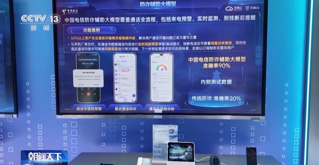 中国电信产品经理 龙驰:我们应用了两个AI算法,分别是关键词检测和专属定制的防诈大模型,目前我们这个防诈大模型准确率已经能够达到90%。