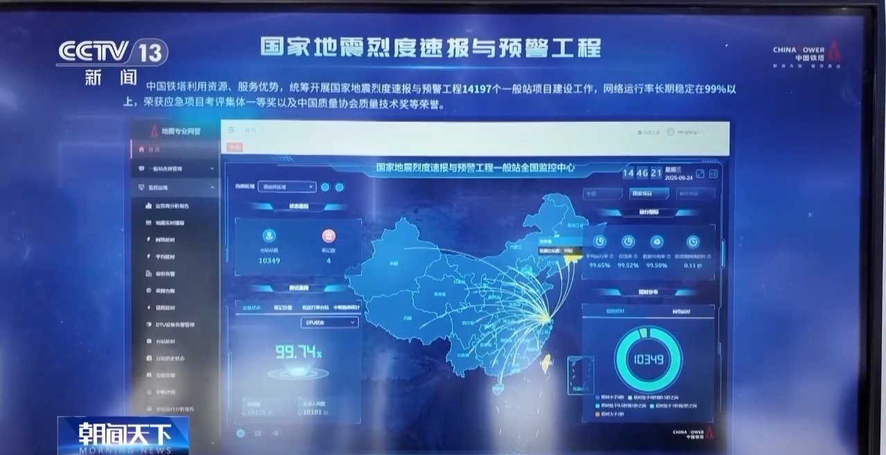 中国铁塔平台创新中心IT项目经理 曾峰:(地震)烈度仪通过在机房地面或者墙壁上挂载之后,它会选择一个最优线路,把数据传输到中国地震局的台网服务器内,这样可以使得我们的地震数据以秒级响应去向全国播报。